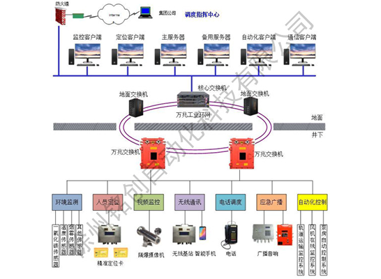 金屬非金屬礦山綜合監(jiān)控管理系統(tǒng)是針對我國非煤礦山現(xiàn)狀而開發(fā)的一套軟、硬件結(jié)合的全礦井生產(chǎn)綜合監(jiān)控系統(tǒng)??蓪ΦV山井下環(huán)境、人員定位、電話調(diào)度、廣播通訊、無線通訊(WIFI、4G)、視頻監(jiān)控、機(jī)車運(yùn)輸監(jiān)控、風(fēng)機(jī)在線監(jiān)測等參數(shù)進(jìn)行綜合監(jiān)控管理。井下通過冗余工業(yè)以太環(huán)網(wǎng),利用多功能監(jiān)測基站,結(jié)合總線等傳輸方式將井下各種子監(jiān)控系統(tǒng)合理地融合為一體,在方便管理維護(hù)的基礎(chǔ)上大大節(jié)約了投資成本。